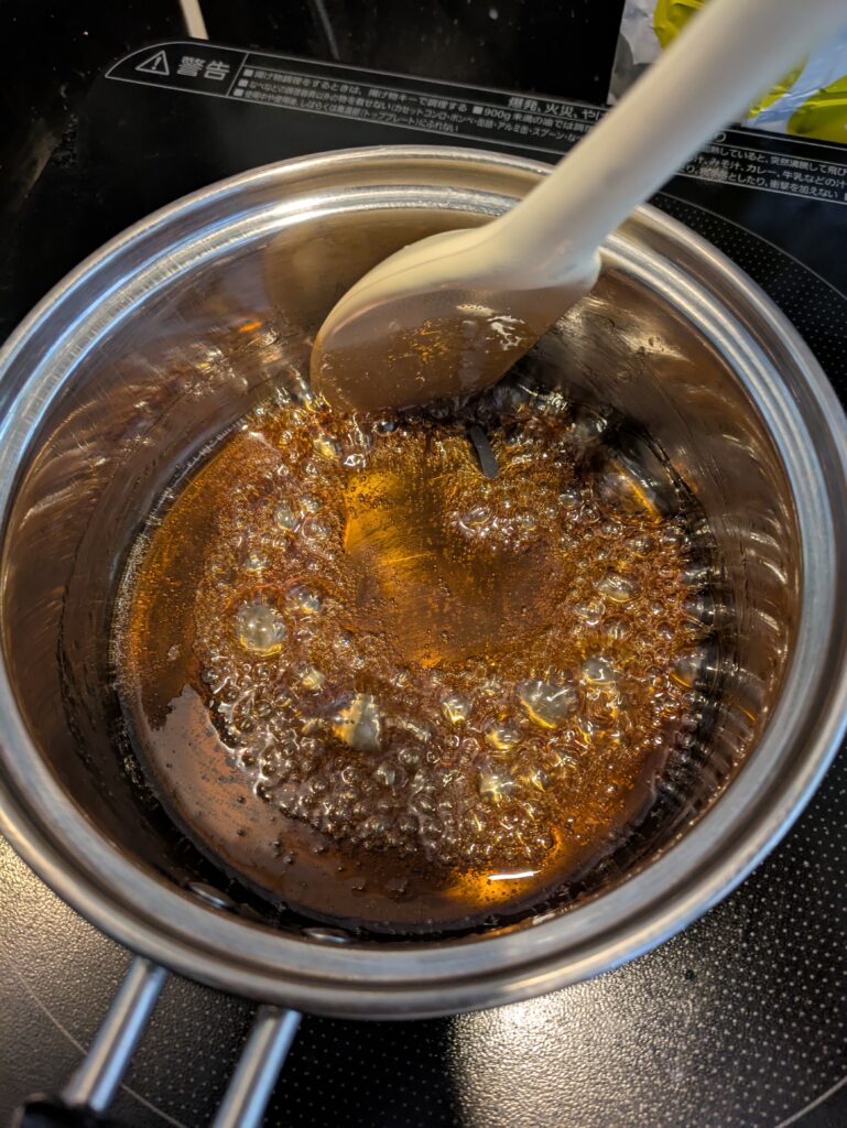 カラメルはしっかりと煮詰めました。焦げそうな臭いしてたけど大丈夫かな…^^;