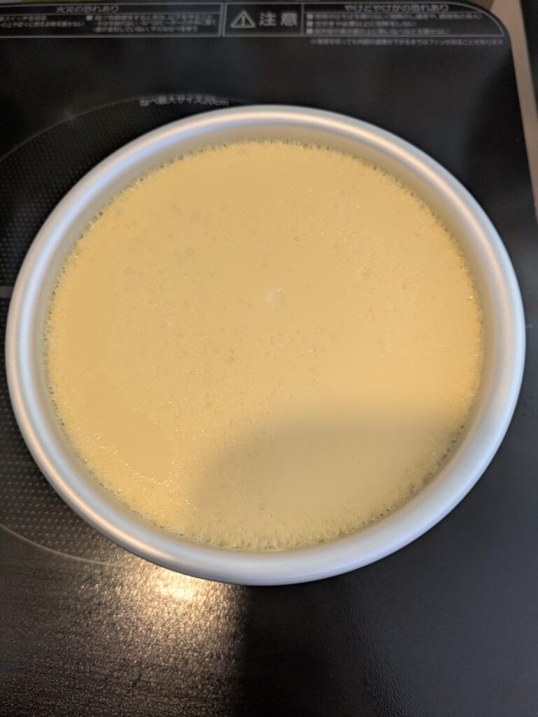 プリン液の材料を少し変えてみました。砂糖控えめ、卵感マシマシです。